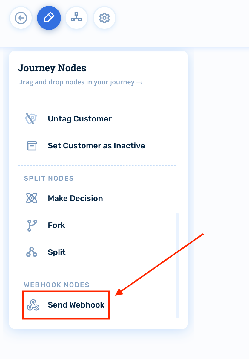 Once you are editing the Journey you want to use, you can open the list of available Journey nodes.