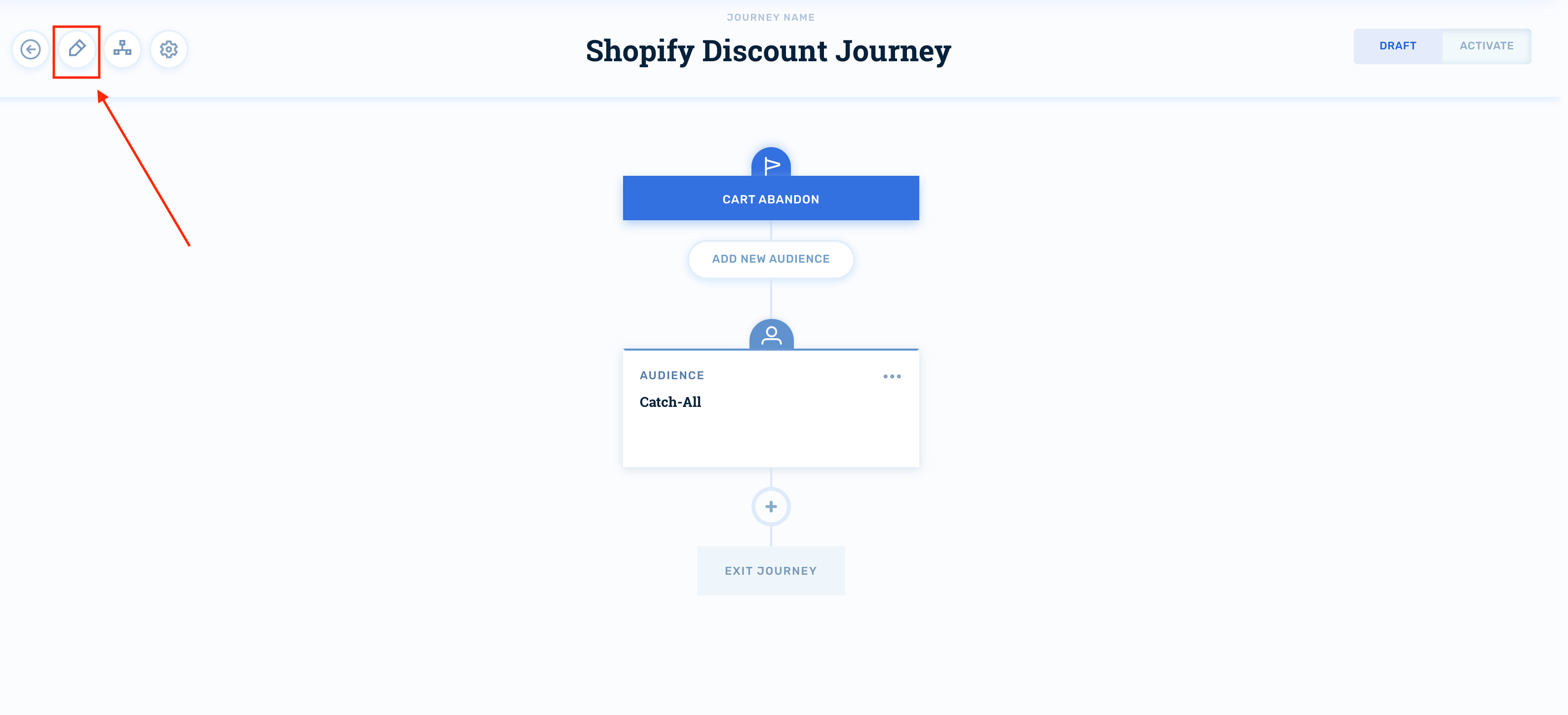 You'll need to access your Rejoiner account and find the Journey you want to use the discount codes in and edit it. If your Journey is already active, you will need to create a copy in order to modify it. After you've completed the changes, you can then activate the copy, which will replace the existing Journey.